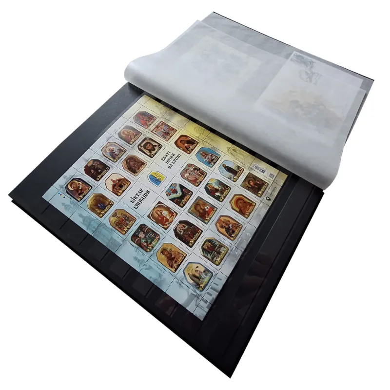 The exclusive stockbook, produced according the order of Ukrposhta by the world-famous manufacturer of accessories for philately Leuchtturm (Germany), contains a unique collection of postage stamps of Ukraine from the wartime of 2025. (in sheets) and FDCs. The composition of the stockbook includes: