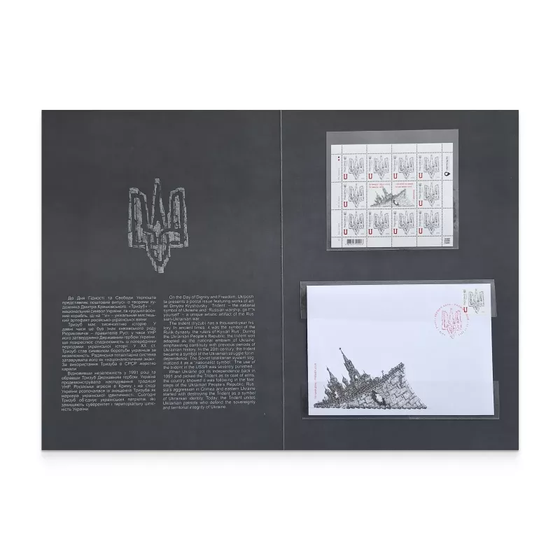 On the Day of Dignity and Freedom, Ukrposhta presents a postal issue featuring works by artist Dmytro Kryshovsky: “Trident” – the national symbol of Ukraine, and “Russian warship, go f*** yourself” – a unique artistic artifact of the Russian-Ukrainian war.