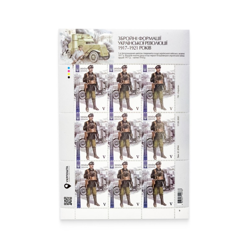 The series of postage stamps "Armed Formations of the Ukrainian Revolution of 1917-1921" was launched in 2019 at the initiative of the Ukrainian Institute of National Remembrance and is dedicated to the 100th anniversary of the liberation struggle of the Ukrainian Revolution in the early twentieth century.