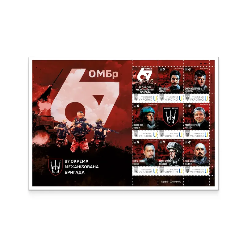 Поштовий випуск присвячено полеглим Героям України — воїнам 67-ї окремої механізованої бригади, а також є знаком пошани чинним військовослужбовцям підрозділу.