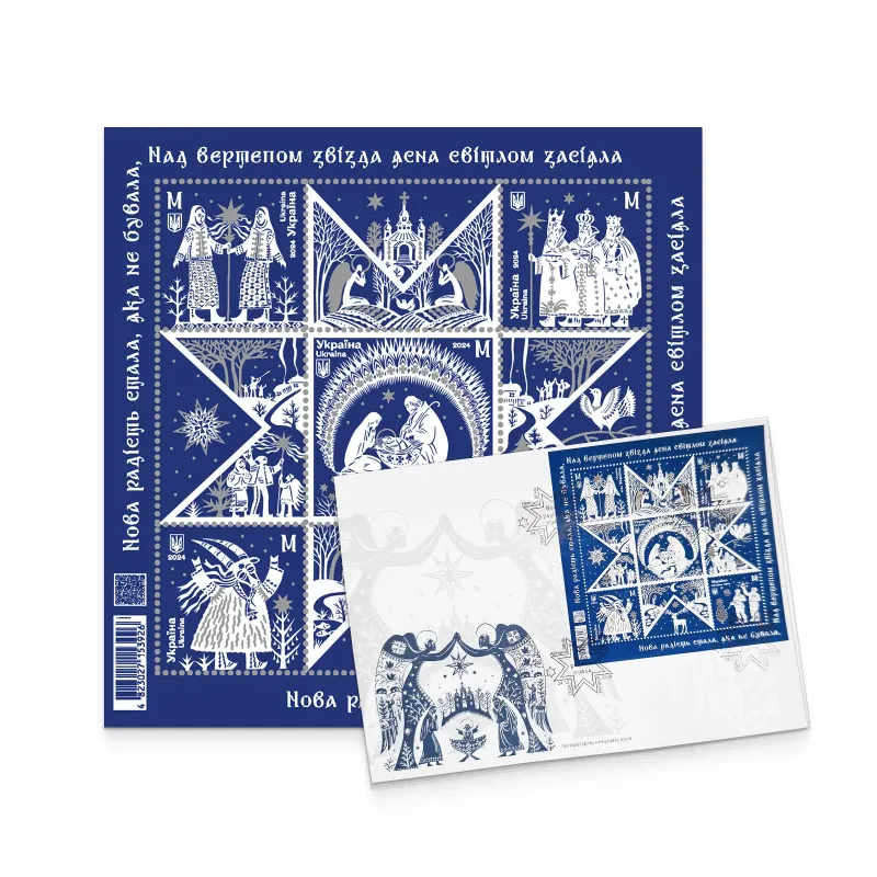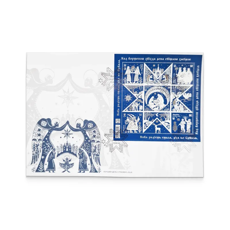 Пропонований поштовий набір включає: блок «Нова радість стала, яка не бувала. Різдво» та конверт «Перший день» з погашенням.