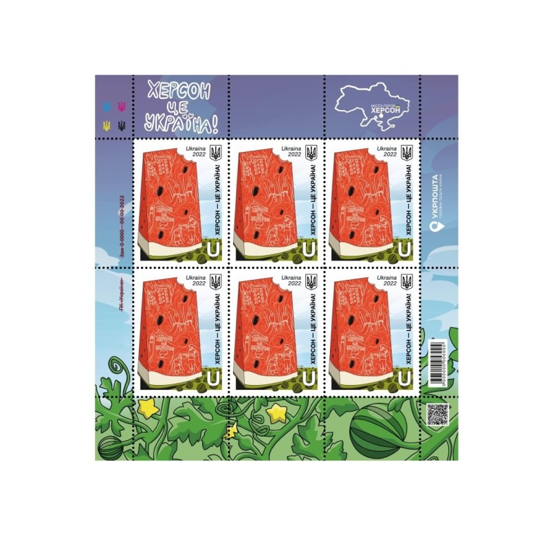 Жадану звістку пор звільнення Херсона чекає кожен українець. Укрпошта не має жодних сумнівів щодо деокупації міста Збройними Силами України і тому заздалегідь підготувала таку довгоочікувану та символічну поштову марку - «Херсон – це Україна!». До марки буде випущено конверт «Перший день», немаркований художній конверт та картку. Центральним об’єктом на поштовій марці зображено скибку кавуна – символ Херсона і Херсонщини. Насіння кавуна представлено у вигляді ракет, якими російські загарбники обстрілювали місто. На скибці кавуна художник зобразив сюжети, які супроводжували тимчасову окупацію міста: протести мирних городян, палаючі будівлі, тортури, які вчиняли російські солдати проти місцевого населення і особливо активістів. На полях маркового аркуша представлена карта України із позначенням звільненого Збройними Силами України міста-героя Херсона. Крім того, на конверті «Перший день» зображено українського військового, який за аналогії зі скибкою кавуна повертає на місце тимчасово окуповану частину України. На немаркованому художньому конверті та картці проілюстрована хроніка періоду тимчасової анексії міста – протести мешканців Херсону проти окупаційних військ. Автор випуску – Андрій Сагач, відомий українцям як переможець національного етапу конкурсу ескізів до поштової марки «Мир – найвища цінність людства!», а також автора конверта з оригінальною маркою «Весна настане знову!».