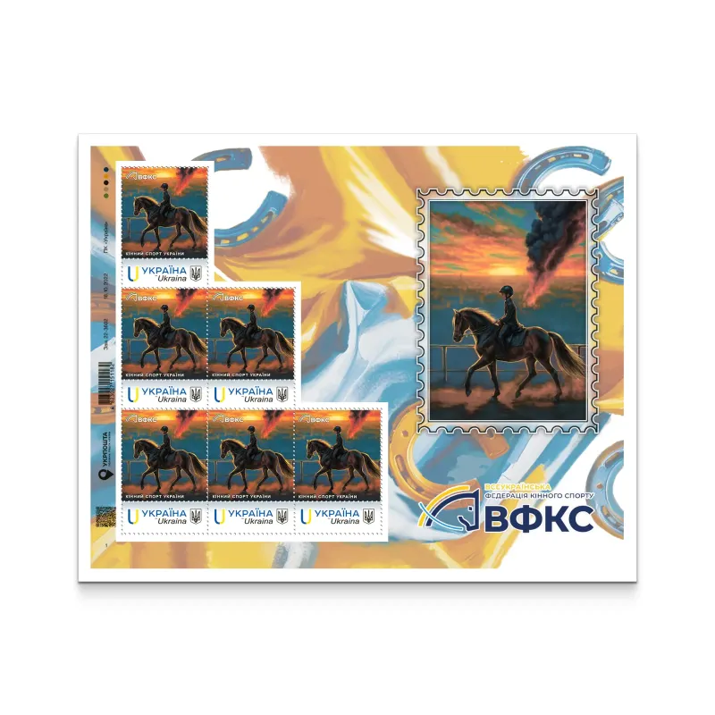 Аркуш з 6 марок «Кінний спорт України» за проєктом «Власна марка»