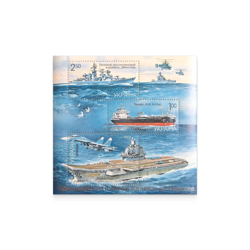 До складу блоку входять три марки: «Танкер "Kriti Amber"», «Великий протичовновий корабель "Миколаїв"» та «Авіаносець "Адмірал Флоту Радянського Союзу Кузнєцов". Усі зображені на марках судна були побудовані в місті Миколаїв, що є серцем українського суднобудування.