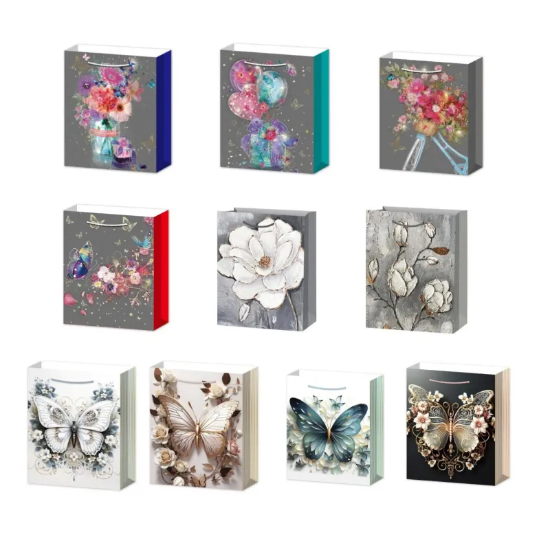 Набір із 10 подарункових паперових пакетів з весняними дизайнами — яскраве оформлення для ваших святкових подарунків.